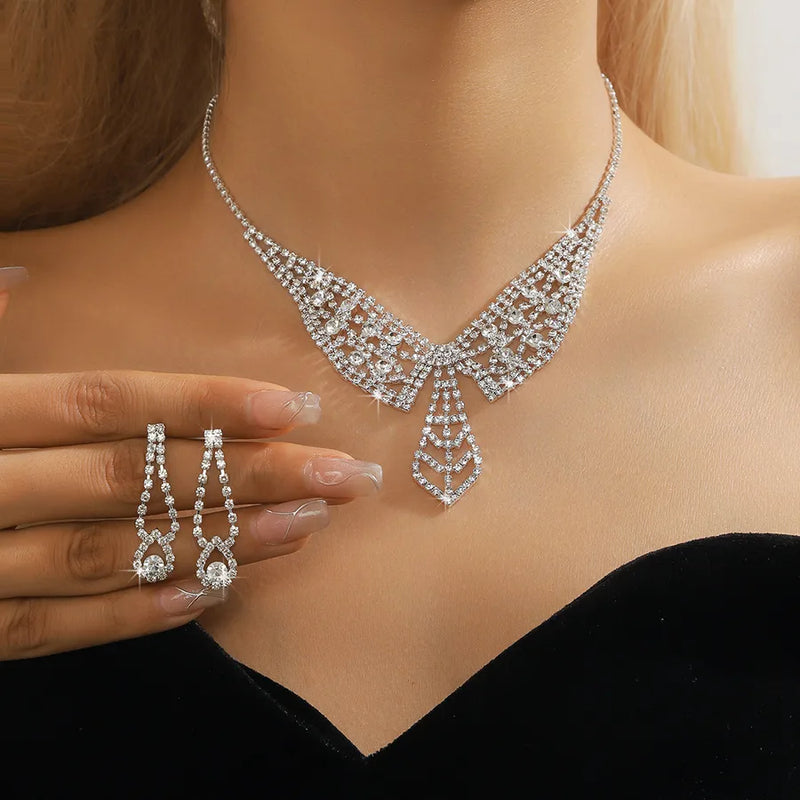 Copper Inlay Water Droplets Rhinestones Jewelry Set