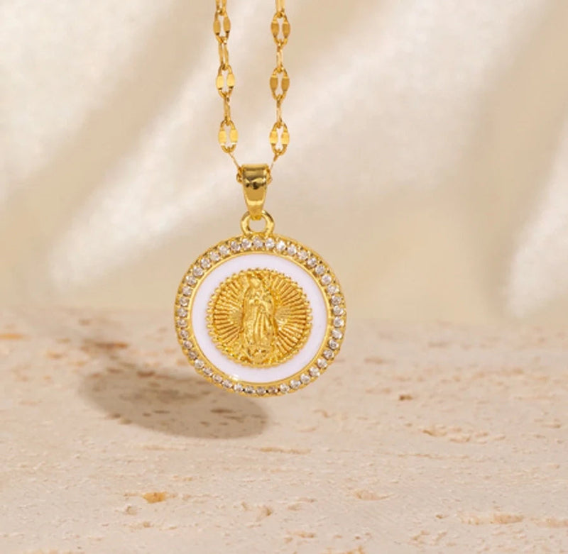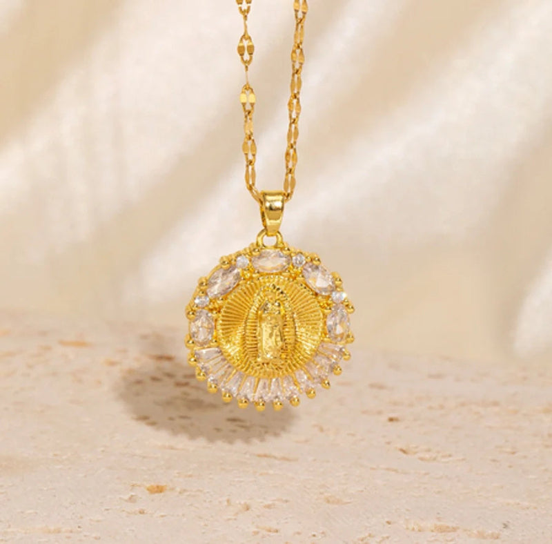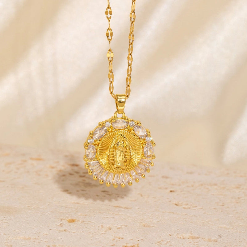 Copper Plating Geometric Virgin Mary Pendant Necklace