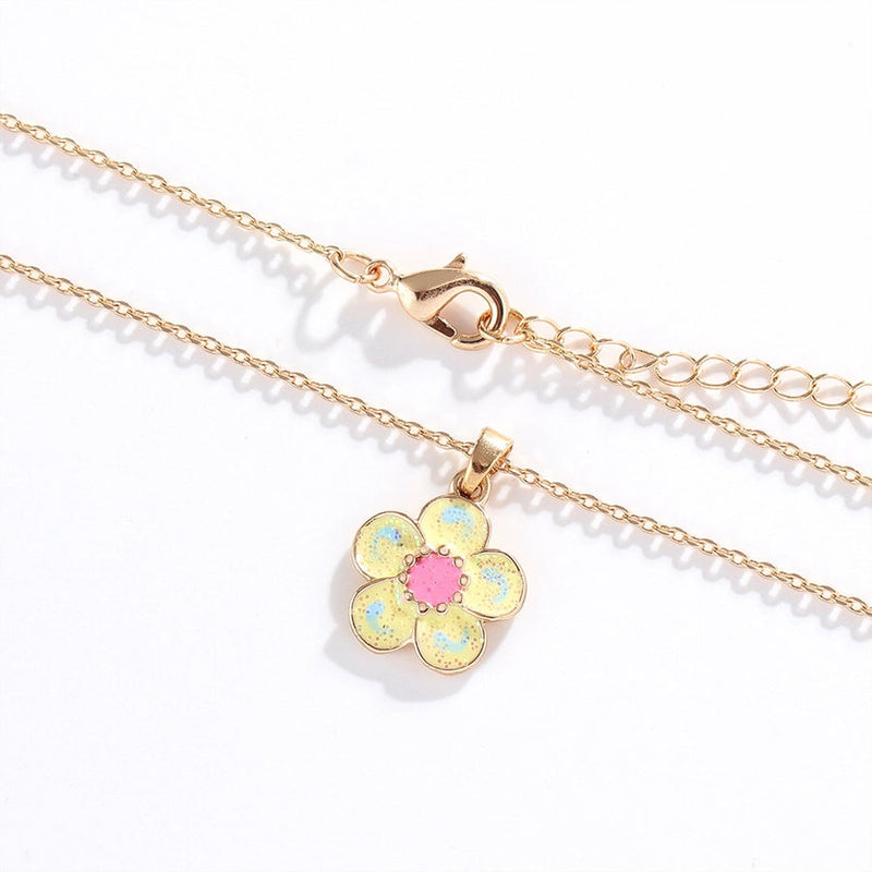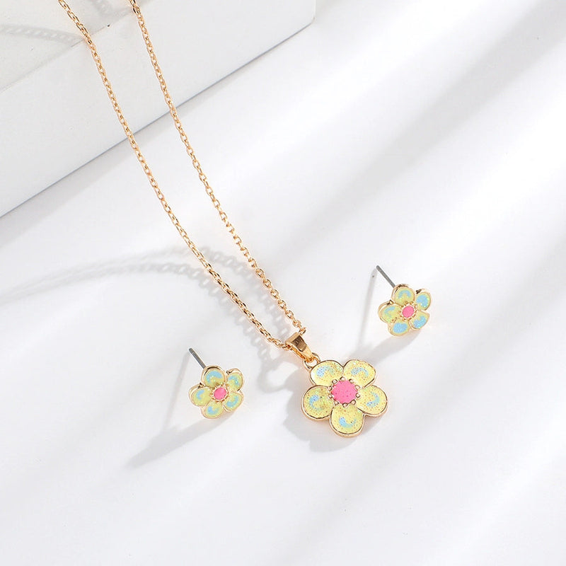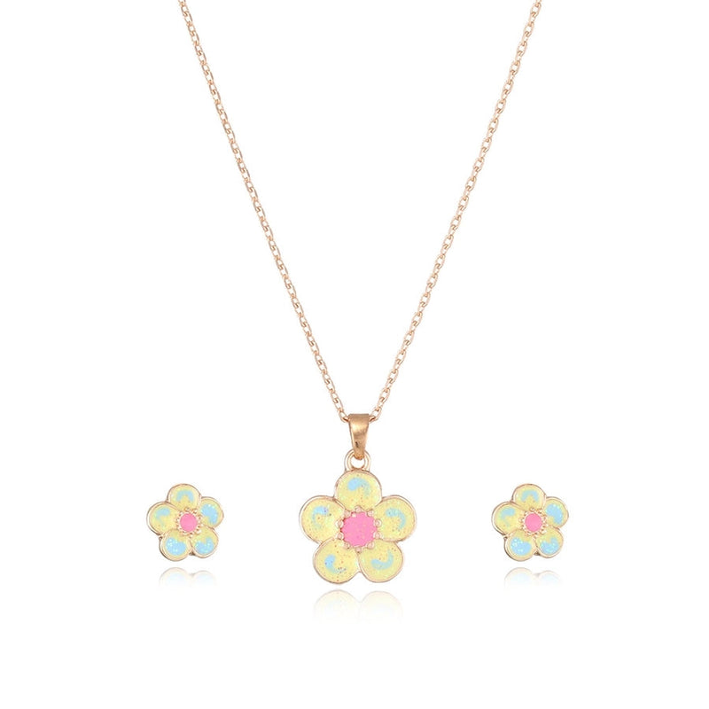 creative children's jewelry set cartoon flower jewelry set alloy drop oil necklace earrings two-piece set