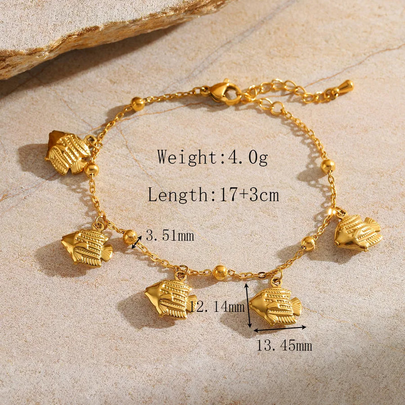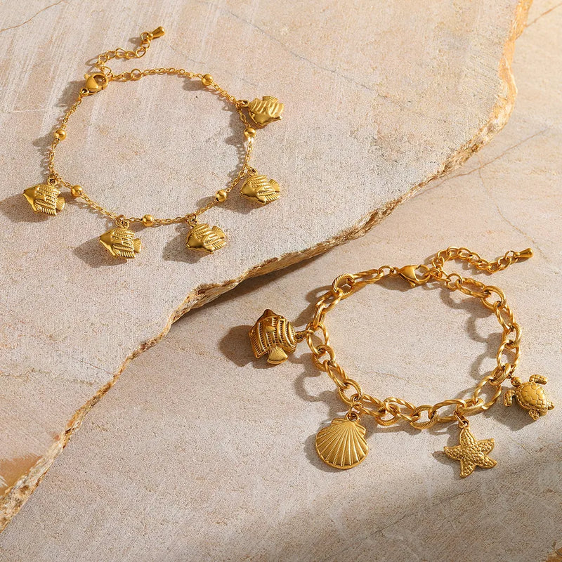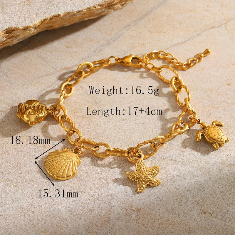 Cute Simple Style Commute Tortoise Starfish Shell 304 Stainless Steel 18K Gold Plated cable chain Multi Charms Bracelet In Bulk