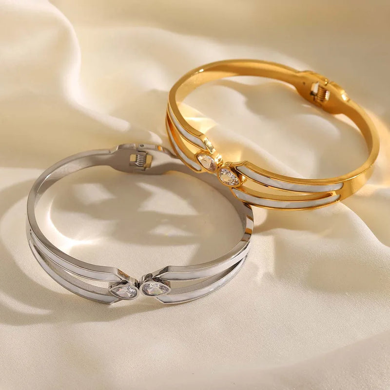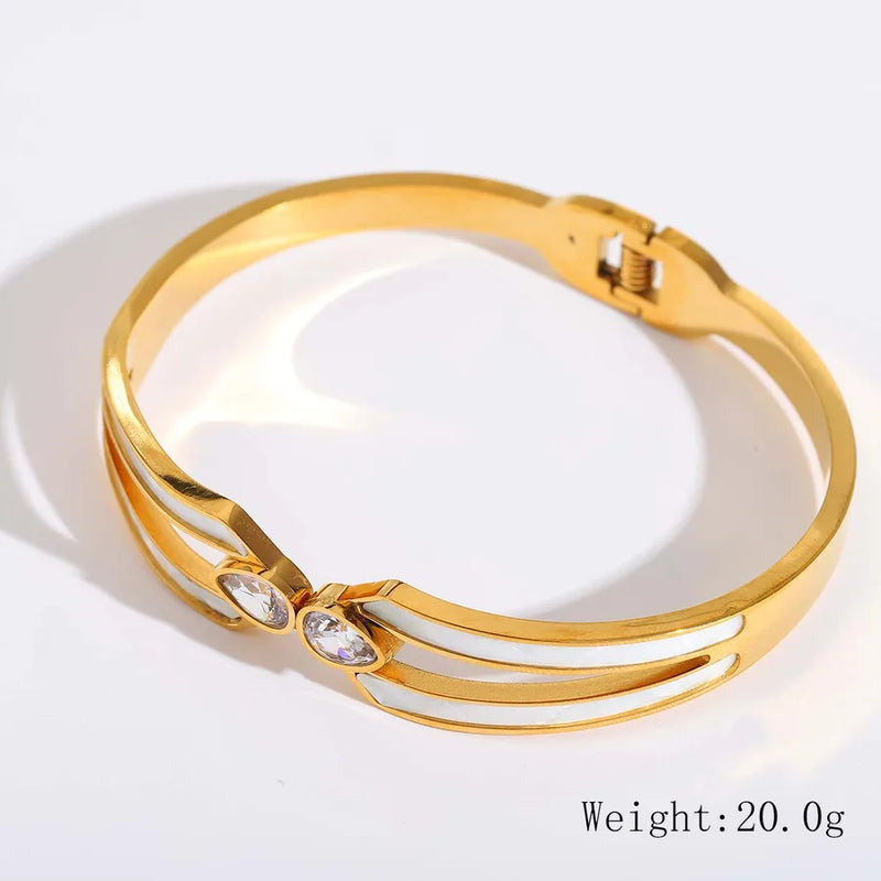Elegant Artistic Solid Color 304 Stainless Steel 18K Gold Plated Zircon Bangle In Bulk