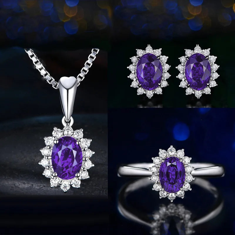 elegant retro oval copper artificial gemstones rings earrings necklace