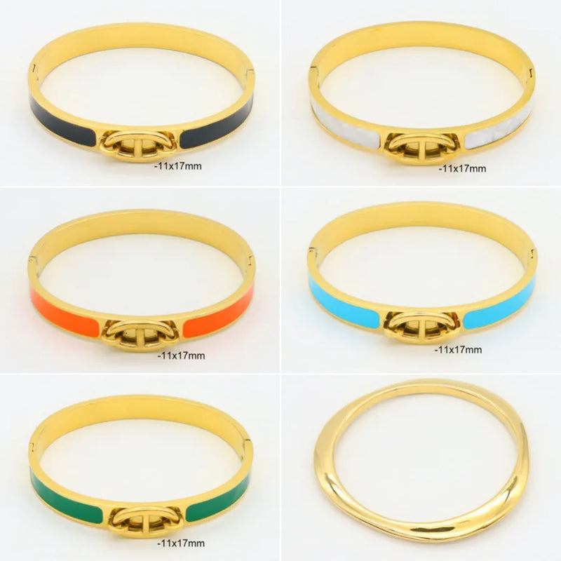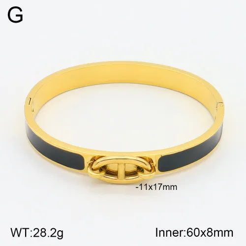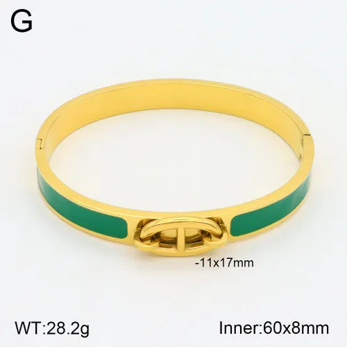 Elegant Simple Style Colorful Oil Painting 304 Stainless Steel 18K Gold Plated Bangle In Bulk