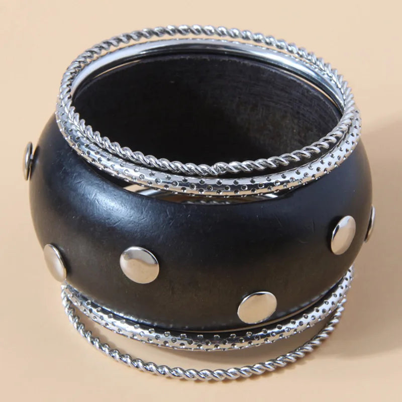 Elegant Simple Style Round Ferroalloy Wood Bangles Wholesale