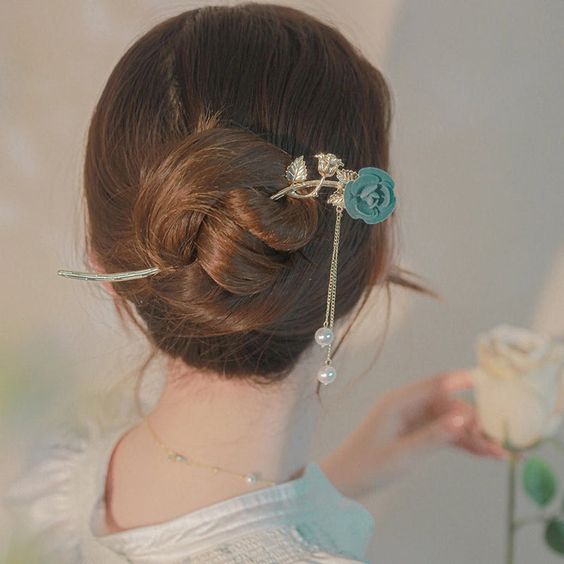 elegant simple style tassel flower alloy plating flowers beads hairpin