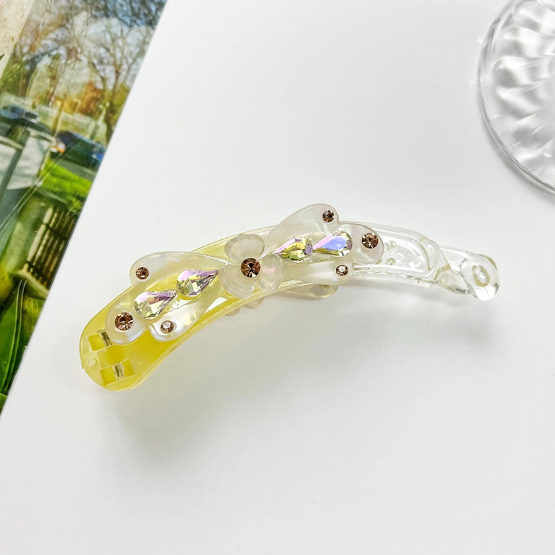 Elegant three-petal flower banana clip large vertical clip Diamond-embedded ponytail clip flower vertical card high-end hairpin hairpin manufacturer
