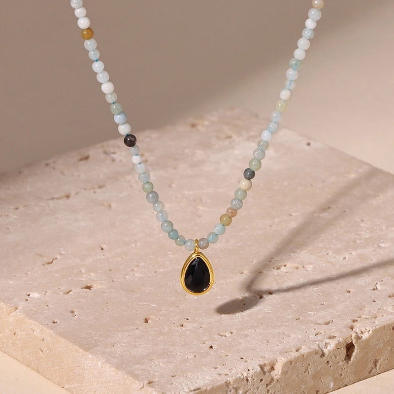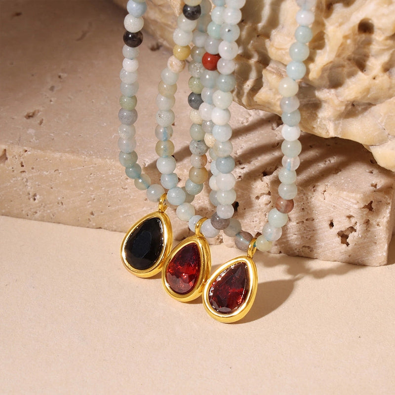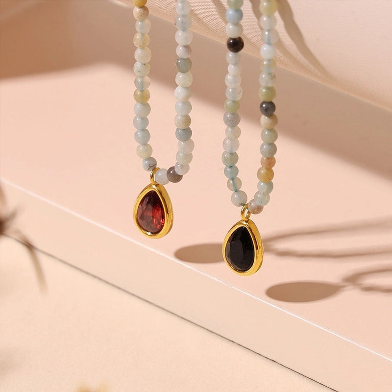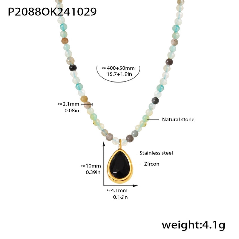 Elegant Vacation Water Droplets 304 Stainless Steel natural stone Zircon Beaded Chain Pendant Necklace In Bulk