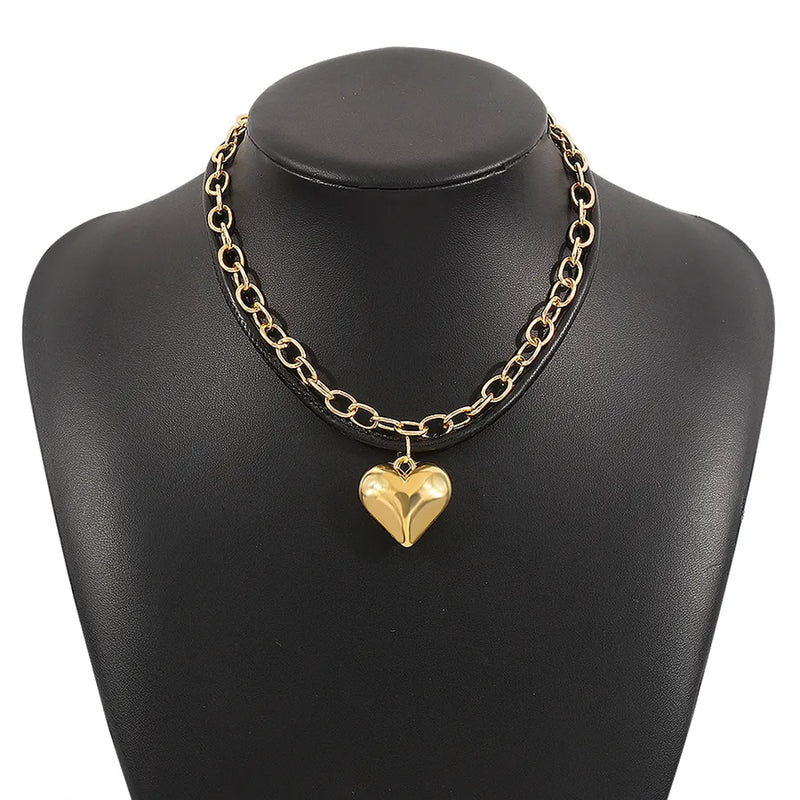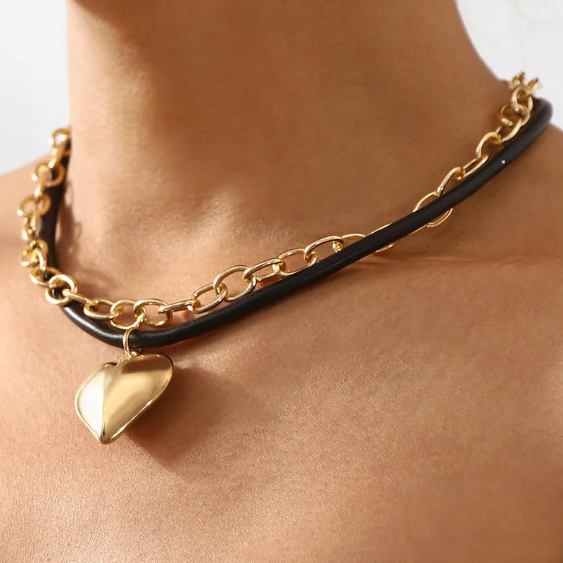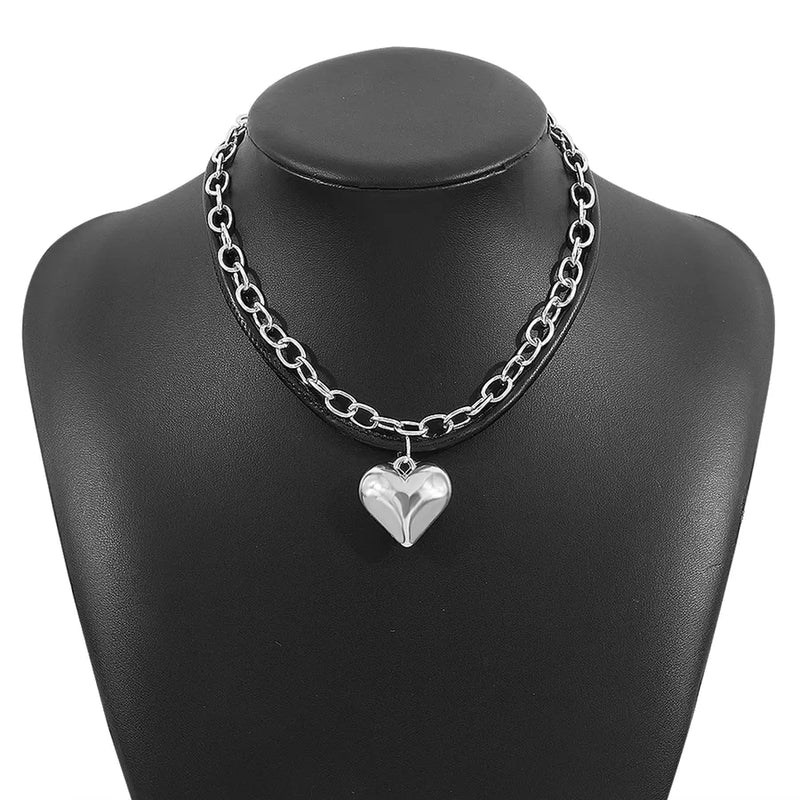 Exaggerated Cool Style Heart Shape CCB Leather rope Aluminum zipper Wholesale Pendant Necklace