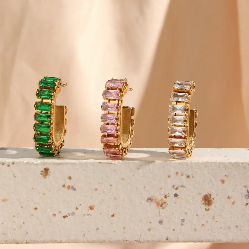 Fashion C Shape Plating 304 Stainless Steel Zircon 18K Gold Plated Earrings