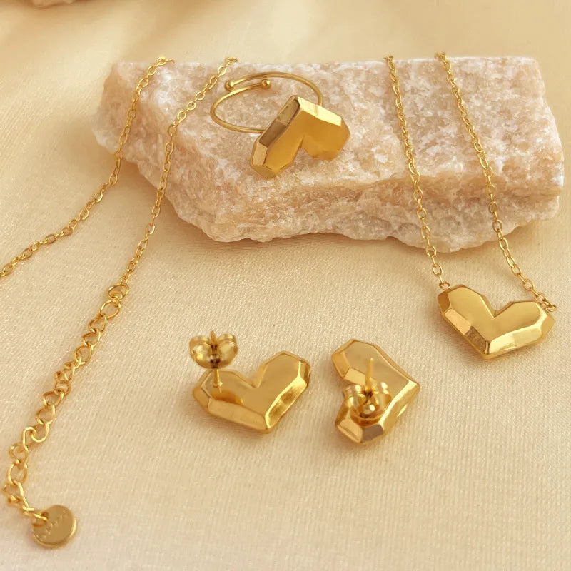 Fashion net red love necklace women's earrings titanium steel pendant set wholesale stainless steel 18K gold plated design sense