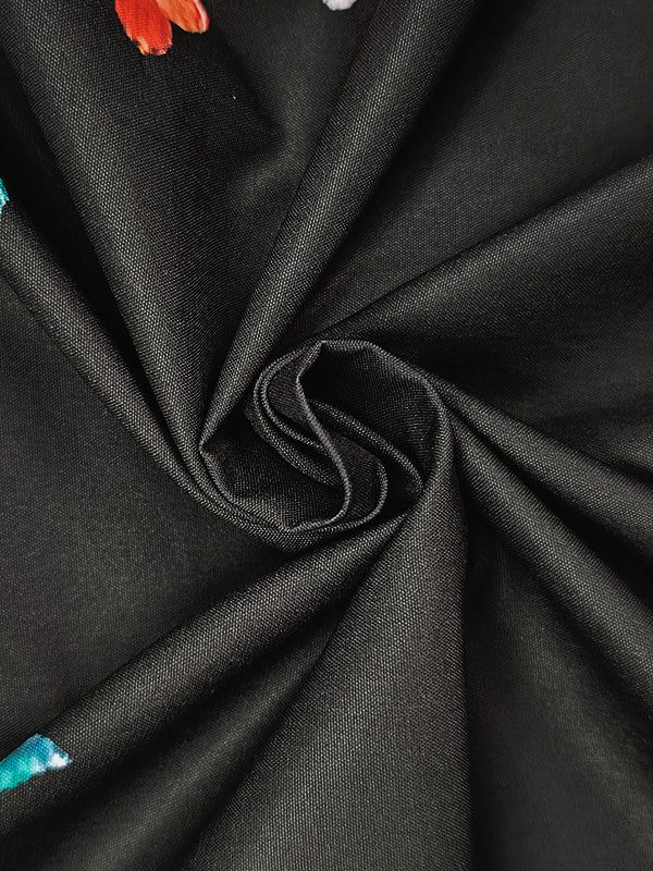 | Feature | Flower Print . Buttoned . Contrast Color |