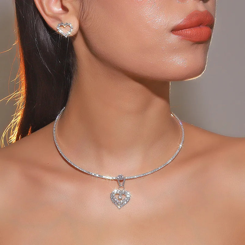 glam solid color copper plating inlay rhinestones silver plated jewelry set