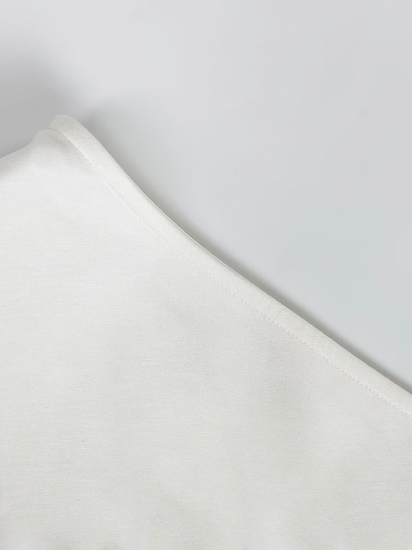 This stunning solid-color dress features a modern asymmetrical hemline (shorter in front. longer in back) that adds instant movement and sophistication to your look. Designed for the fashion-forward urban woman. its flattering silhouette skims the body beautifully. creating an elegant yet playful vibe perfect for both office wear and weekend outings.