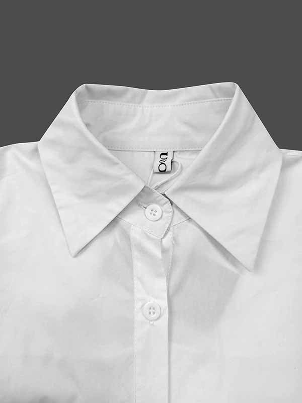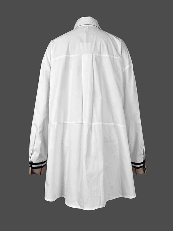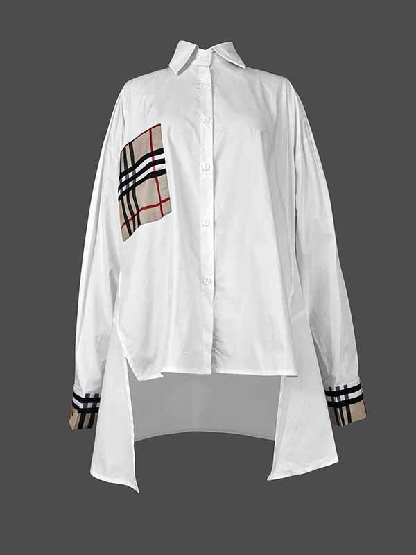 High-Low Long Sleeves Buttoned Plaid Pockets Split-Joint Split-Side Lapel Blouses&Shirts Tops