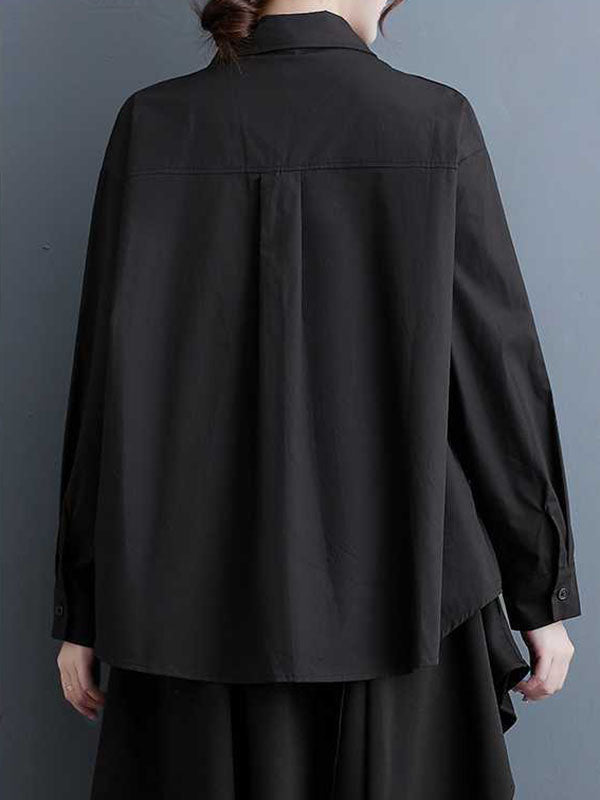 High-Low Long Sleeves Buttoned Printed Lapel Blouses&Shirts Tops