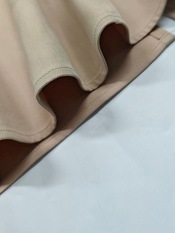 High Waisted Loose Pleated Solid Color Round-Neck Midi Dresses