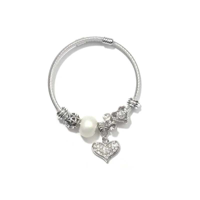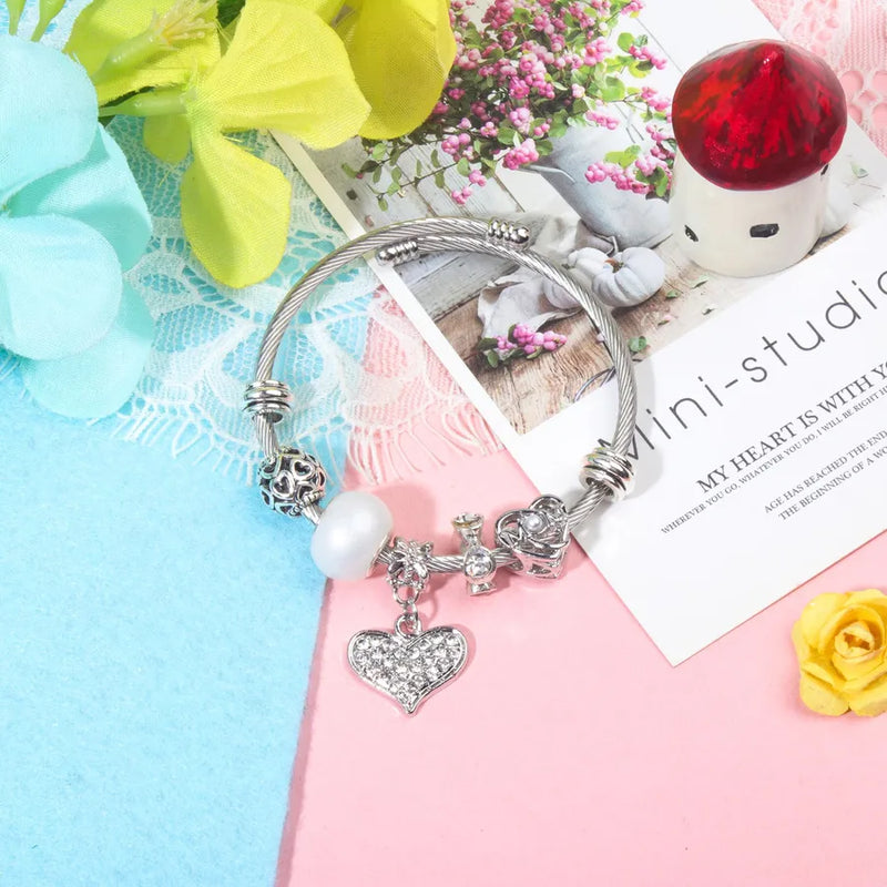 hot selling Panjia silver love diamond-encrusted alloy beaded bracelet jewelry peach heart hand jewelry wholesale