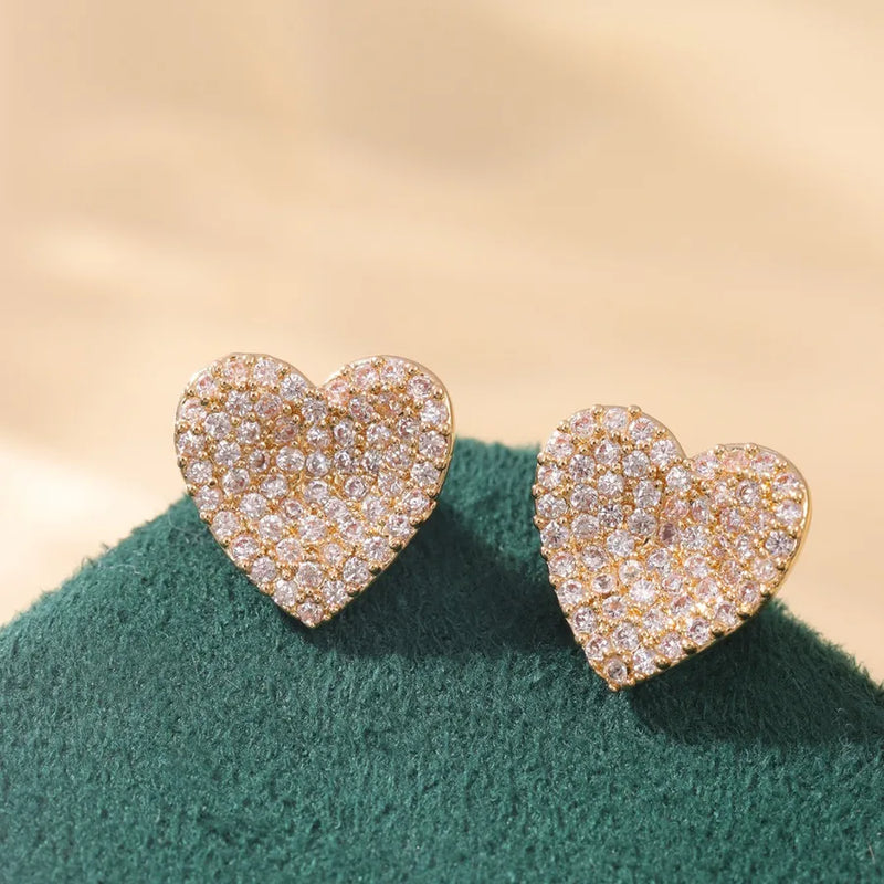 IG Style Heart Shape Plating Inlay Copper Rhinestones Ear Studs