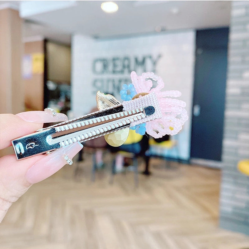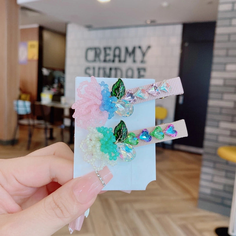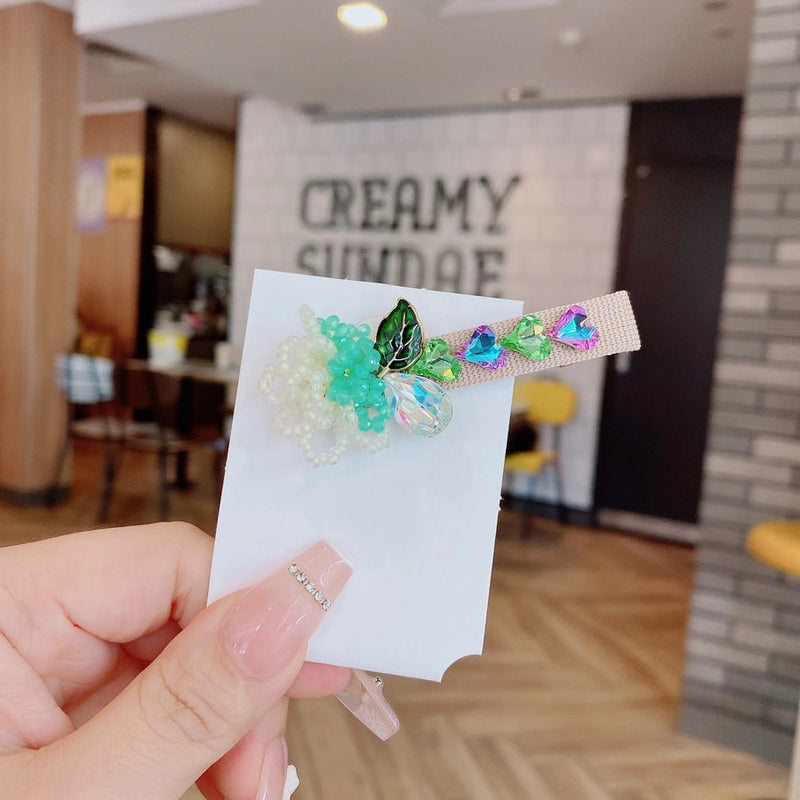 ig style sweet leaves flower artificial crystal alloy beaded inlay rhinestones hair clip
