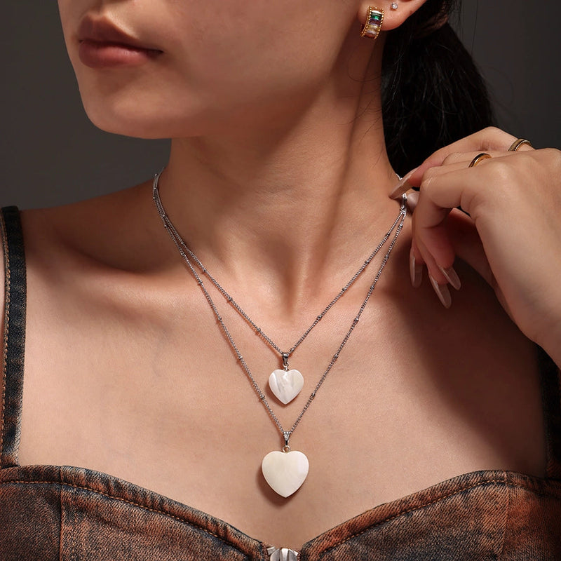 Jewelry Elegant Heart Shape 304 Stainless Steel Shell 18K Gold Plated Plating Pendant Necklace