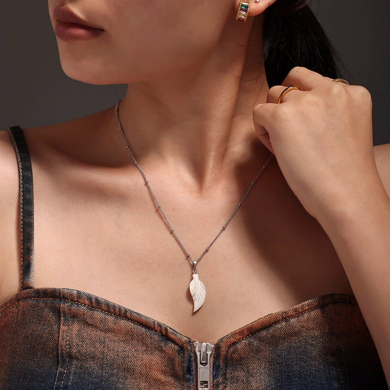Jewelry Elegant Irregular Leaf 304 Stainless Steel Shell Pendant Necklace