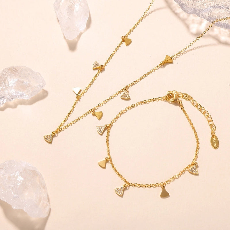 Jewelry Elegant Luxurious Vacation Geometric Titanium Steel 18K Gold Plated Jewelry Set
