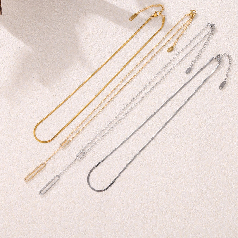 P2068-Steel Rectangular Zircon-Laid Necklace