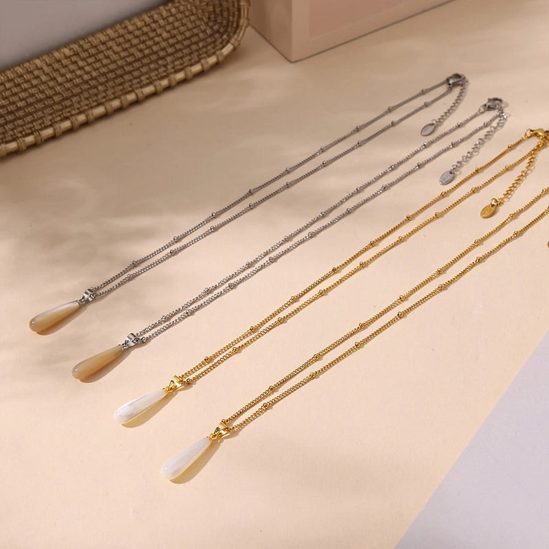 Jewelry Elegant Luxurious Vacation Water Droplets 304 Stainless Steel Shell 18K Gold Plated Pendant Necklace