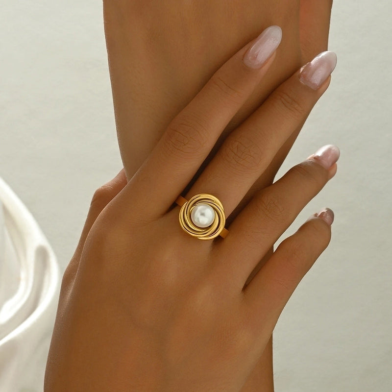 Jewelry Elegant Simple Style Geometric 304 Stainless Steel Artificial Pearls 14K Gold Plated Polishing Plating Inlay Rings Earrings Necklace