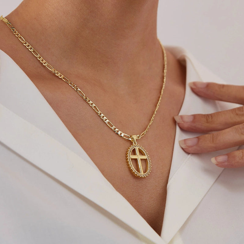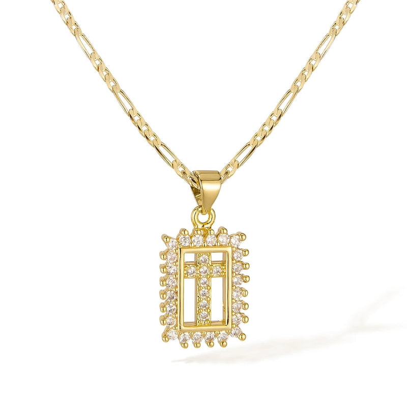 Jewelry French Style Simple Style Cross Copper 14K Gold Plated Pendant Necklace