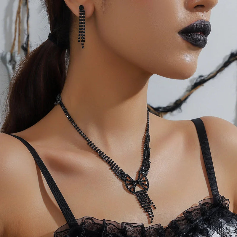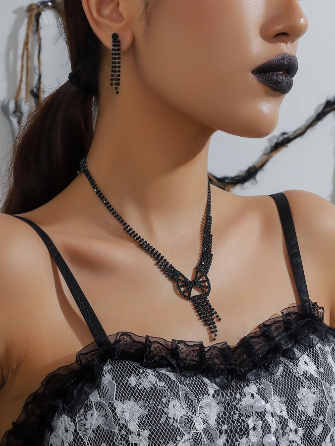 Jewelry Glam Shiny Bow Knot Rhinestone Copper Jewelry Set