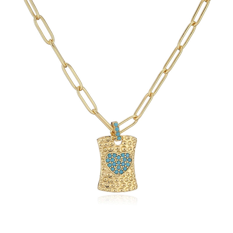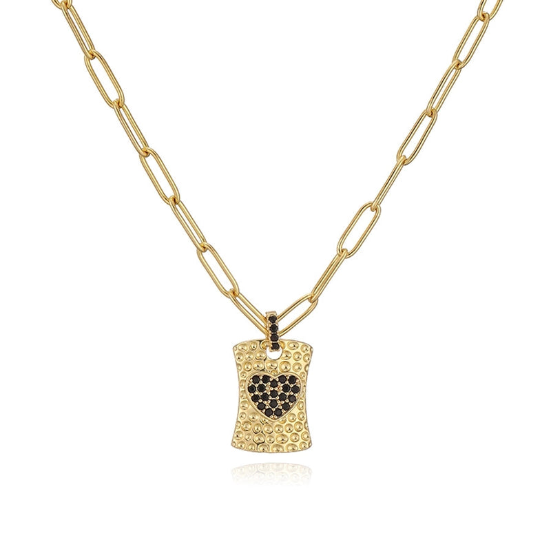 Jewelry Hip-Hop Shiny Heart Shape Copper Copper Zircon 18K Gold Plated Inlay Pendant Necklace