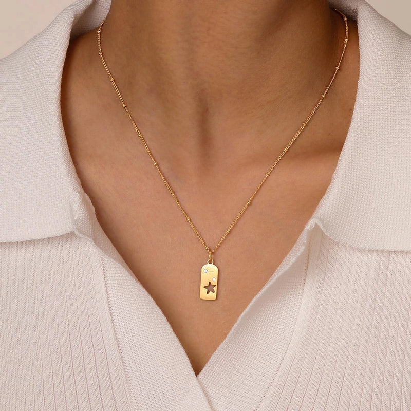 Jewelry IG Style Simple Style Geometric Star 201 Stainless Steel Zircon 18K Gold Plated Hollow Out Inlay Pendant Necklace