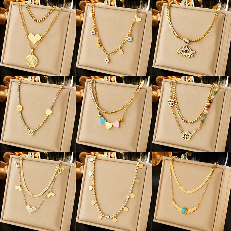 Jewelry Lady Heart Shape Eye Titanium Steel Zircon Plating Necklace
