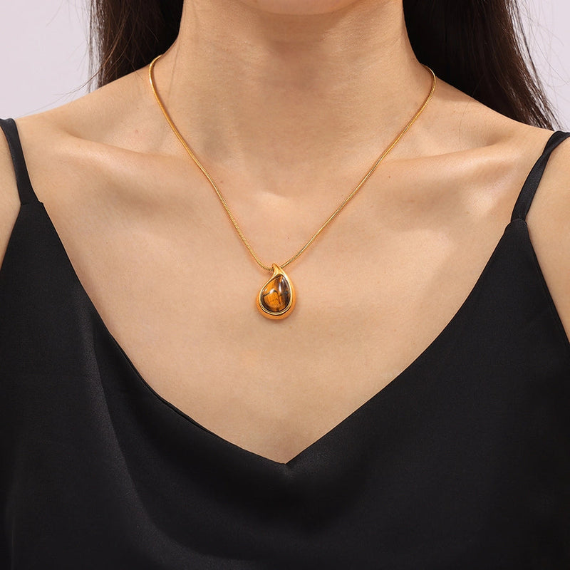 Jewelry Retro Classic Style Water Droplets 304 Stainless Steel Tiger Eye 18K Gold Plated Plating Inlay Pendant Necklace Necklace
