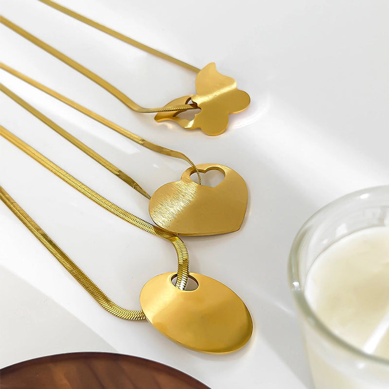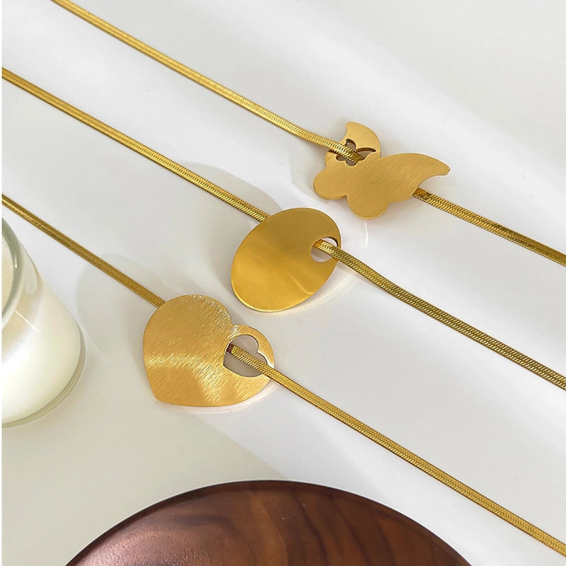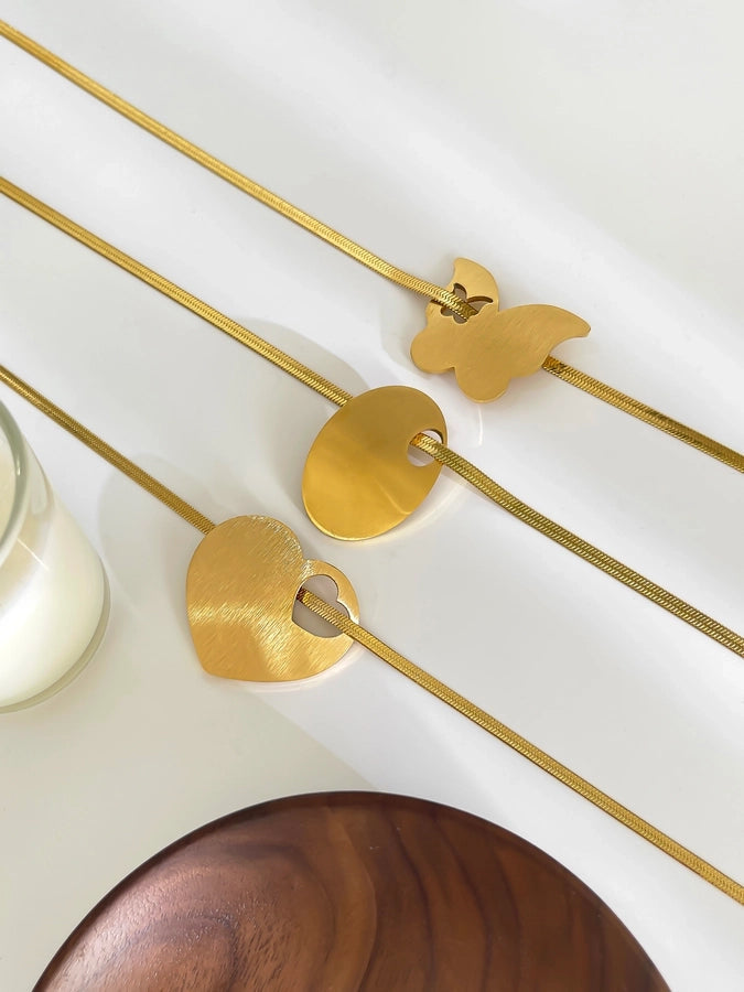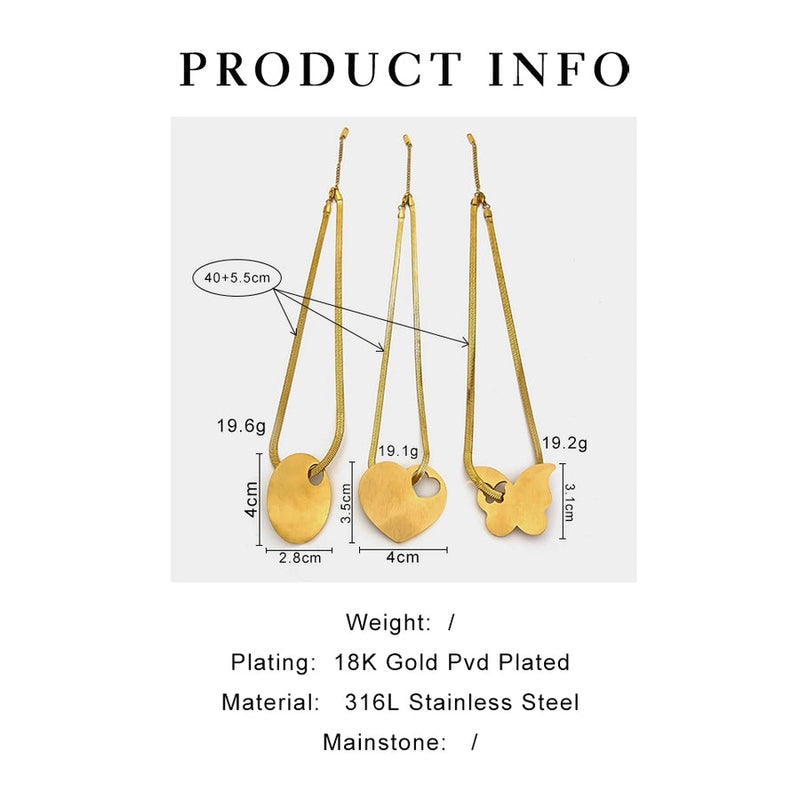Jewelry Retro Exaggerated Heart Shape Butterfly 316L Stainless Steel 18K Gold Plated Pendant Necklace