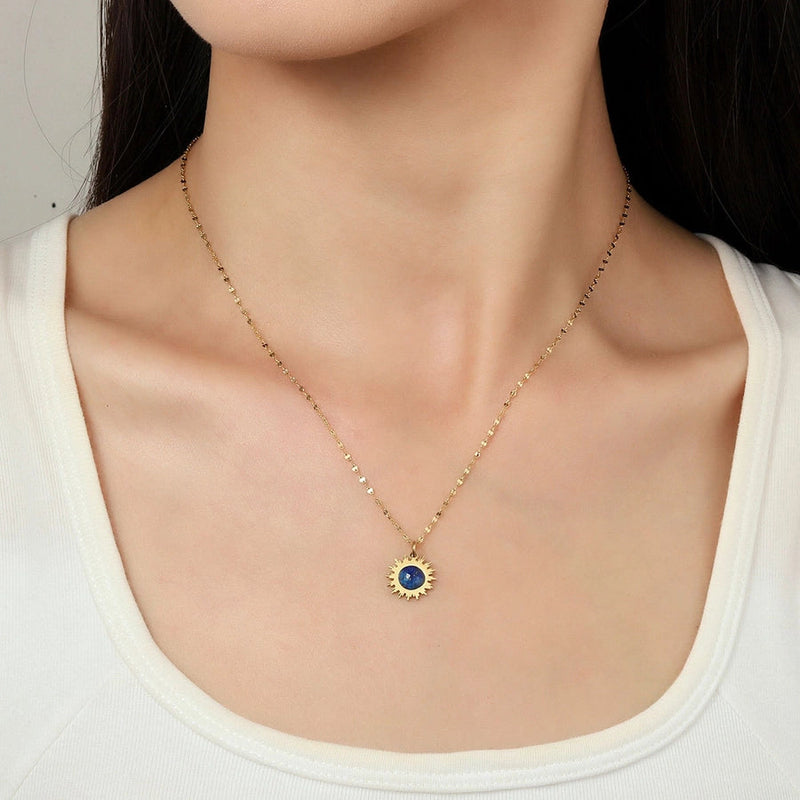 Jewelry Retro French Style Geometric Titanium Steel Natural Stone 14K Gold Plated Plating Pendant Necklace