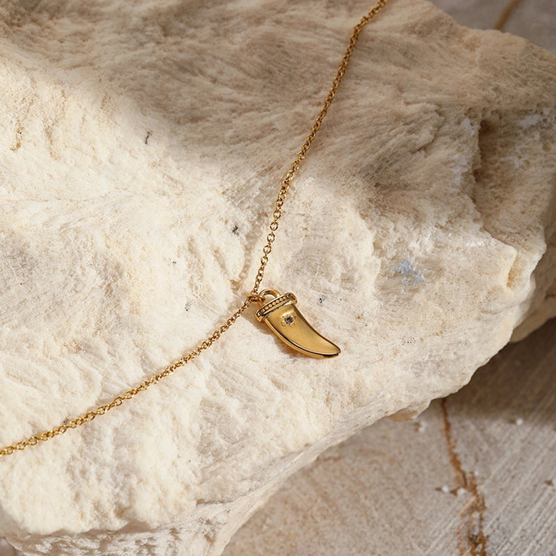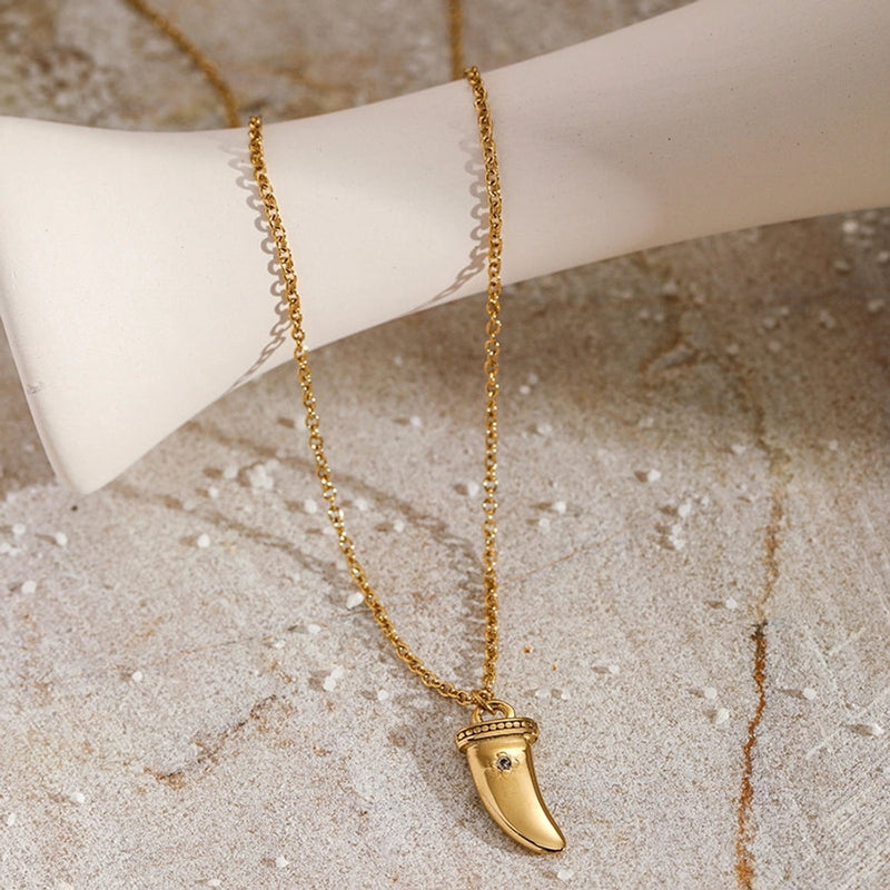 Jewelry Simple Style teeth 304 Stainless Steel Zircon 14K Gold Plated Inlay Pendant Necklace