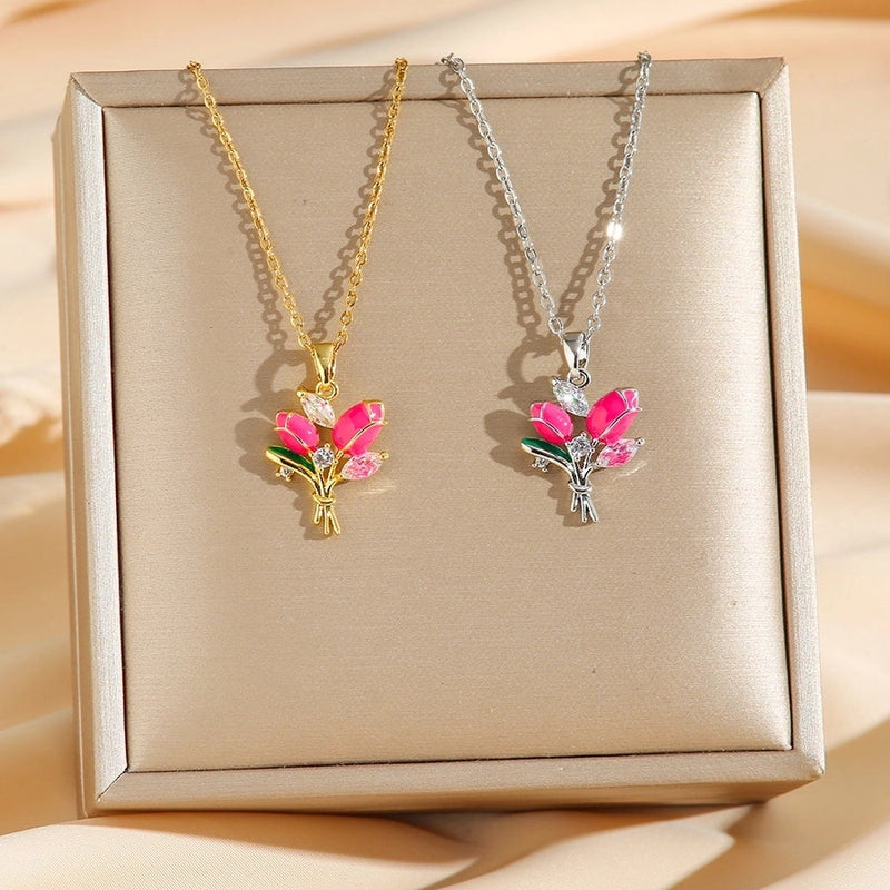 Jewelry Simple Style Tulip Titanium Steel Zircon Pendant Necklace