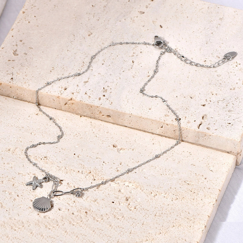 Jewelry Tropical Starfish Shell 304 Stainless Steel Titanium Steel 18K Gold Plated Pendant Necklace