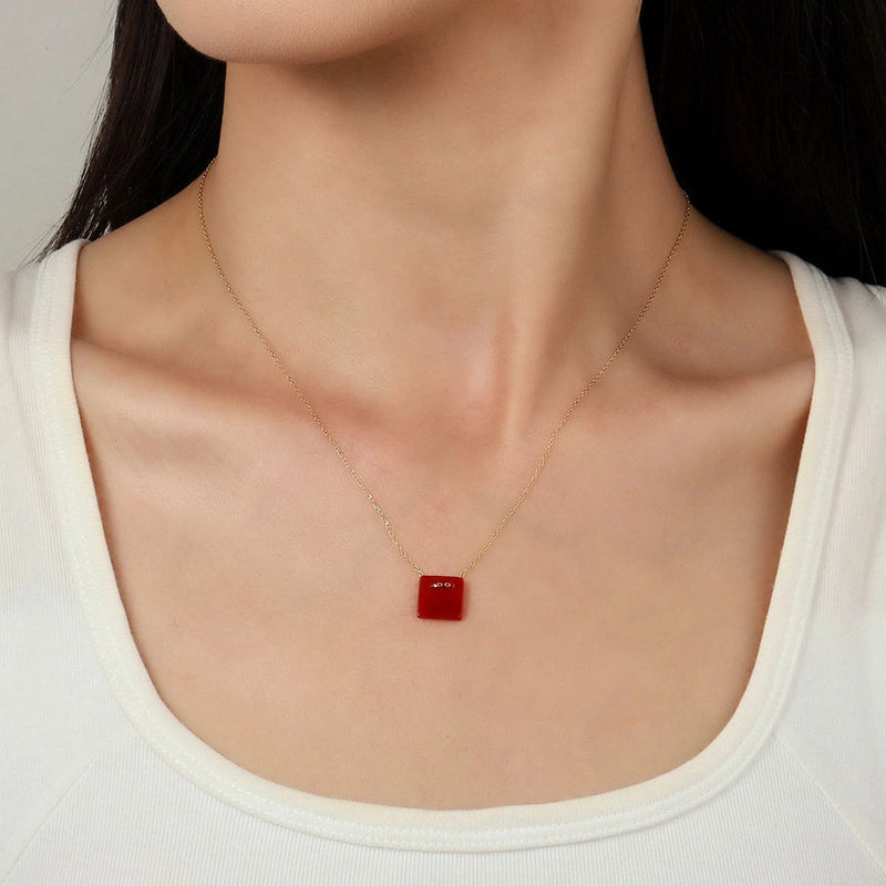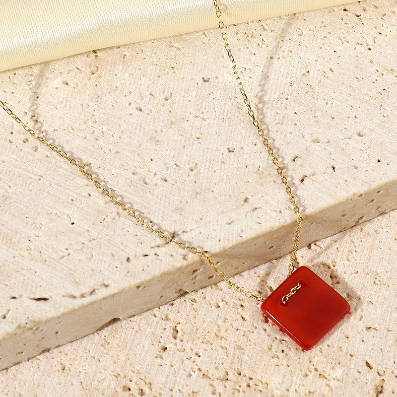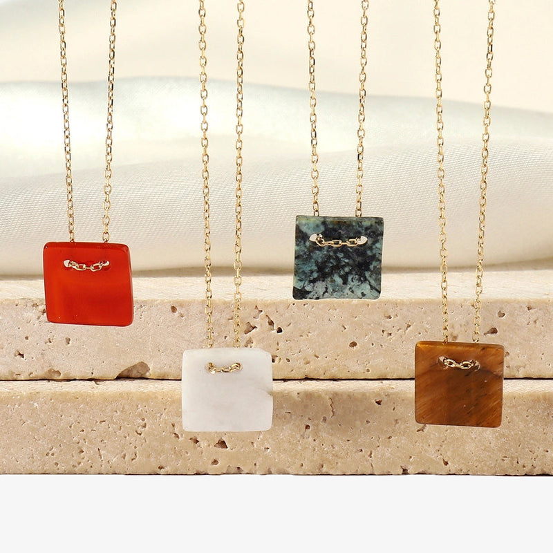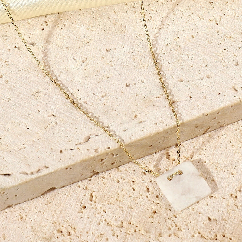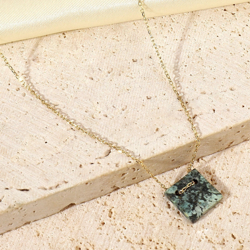 Jewelry Vintage Style French Style Simple Style Geometric Titanium Steel Natural Stone 14K Gold Plated Plating Pendant Necklace