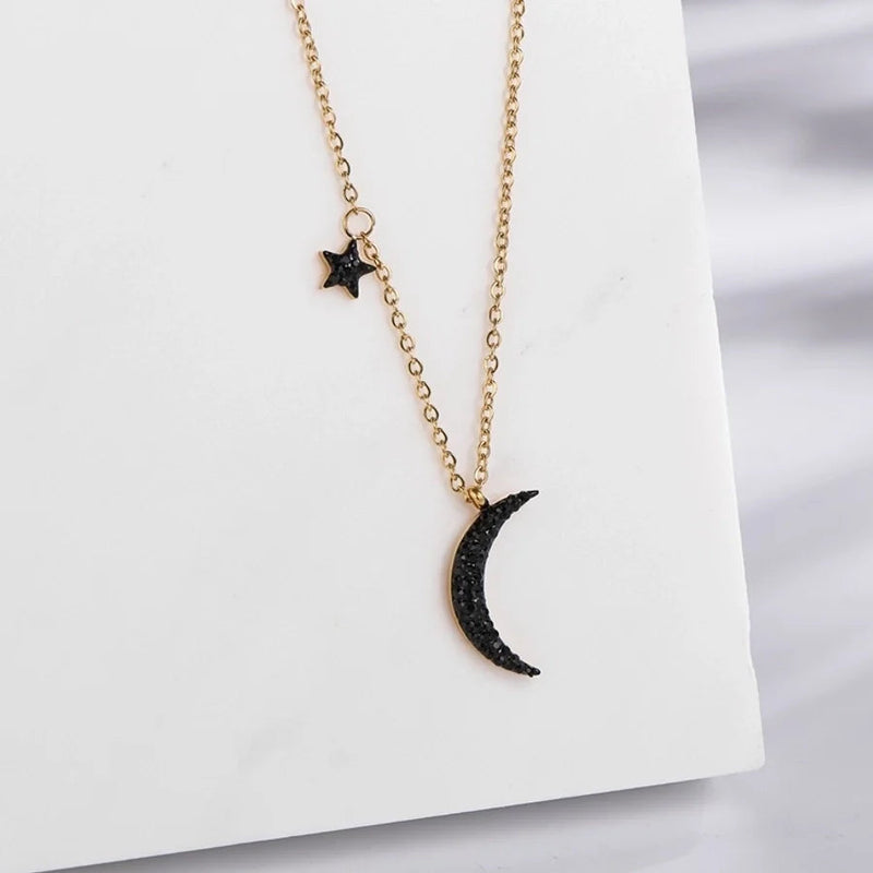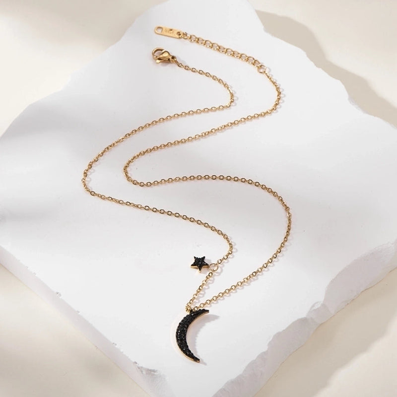 Jewelry Vintage Style Simple Style Star Moon 304 Stainless Steel Gold Plated Star Pendant Necklace