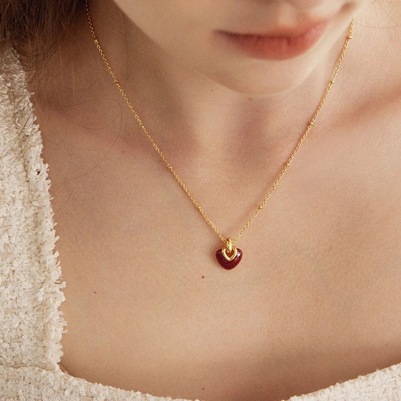 Jewelry Vintage Style Sweet Heart Shape Alloy Copper Pendant Necklace