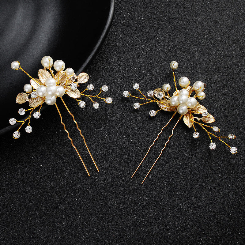 korean bridal headdress pearl u-shaped hairpin alloy flower hair beads