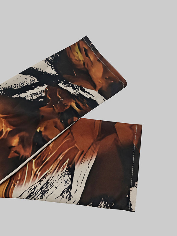 Long Sleeves Loose Floral Printed Pleated Split-Joint V-Neck Jumpsuits