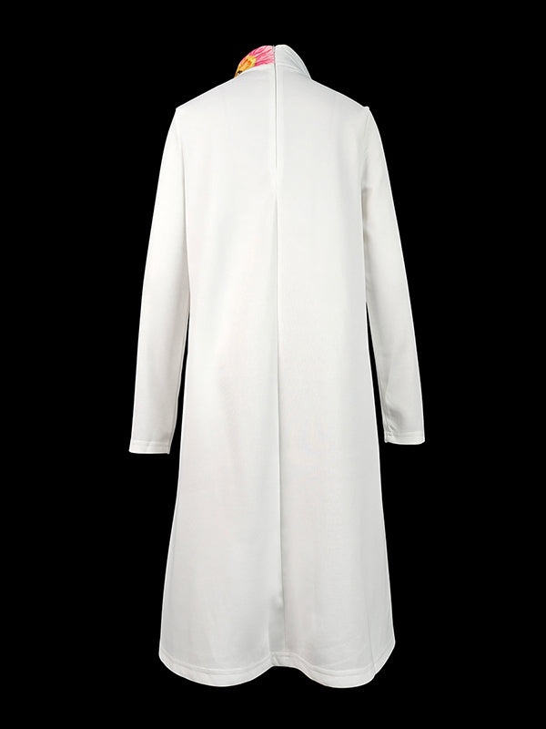 Long Sleeves Loose Flower Print High Neck Midi Dresses