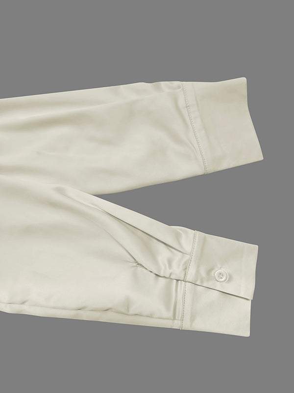 Long Sleeves Loose No Belt Solid Color Notched Collar Maxi Dresses
