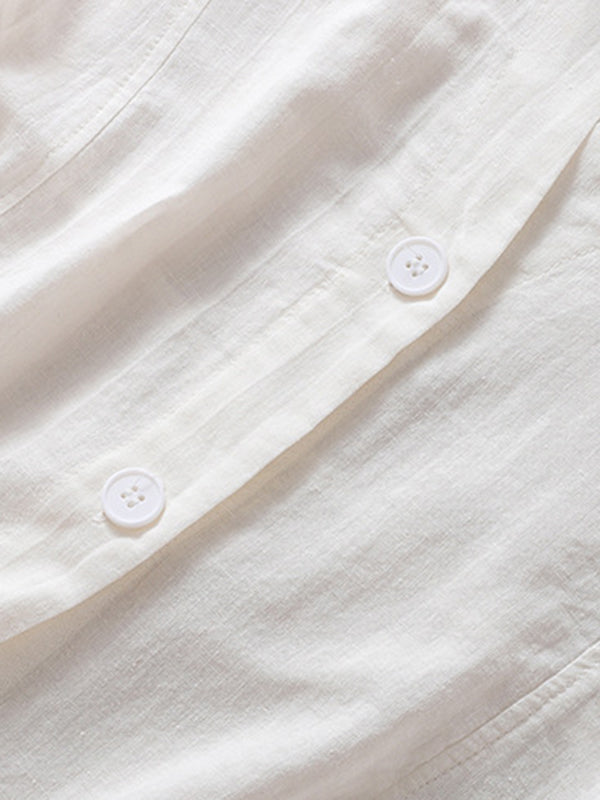Loose Sleeveless Buttoned Solid Color V-Neck Vest Top