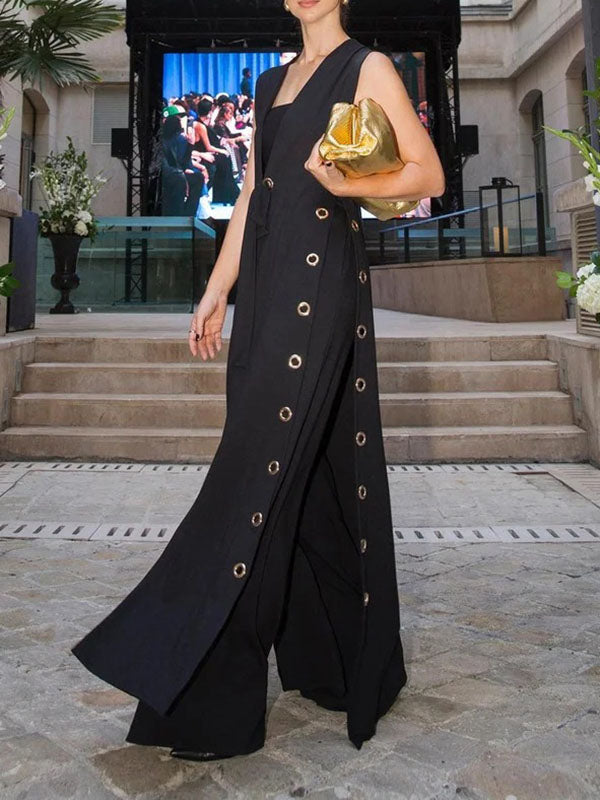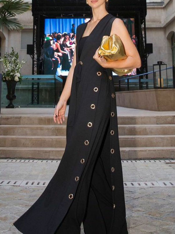 Loose Sleeveless Hollow Split-Joint Split-Side Streamer Deep V-Neck Vest Outerwear