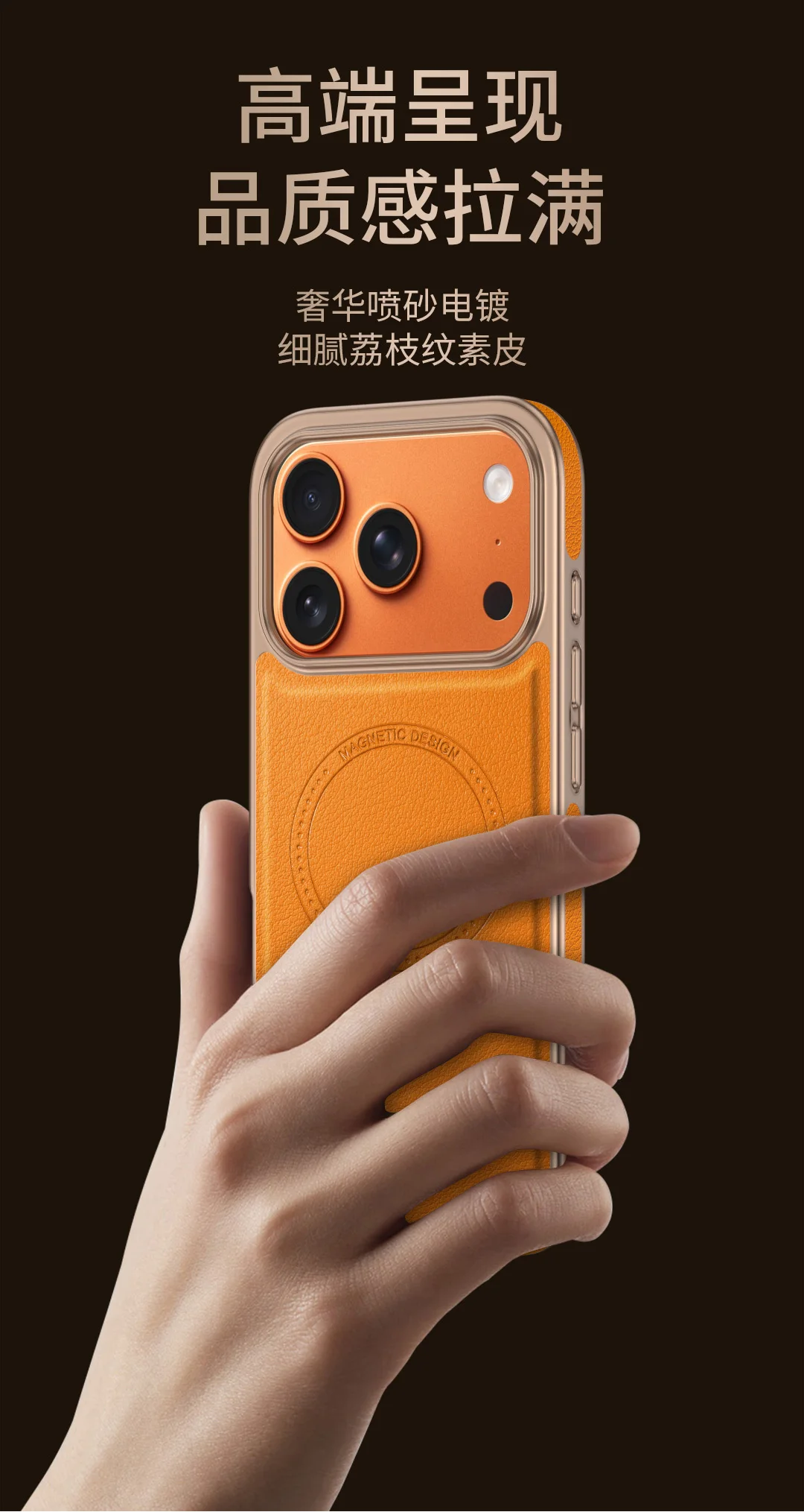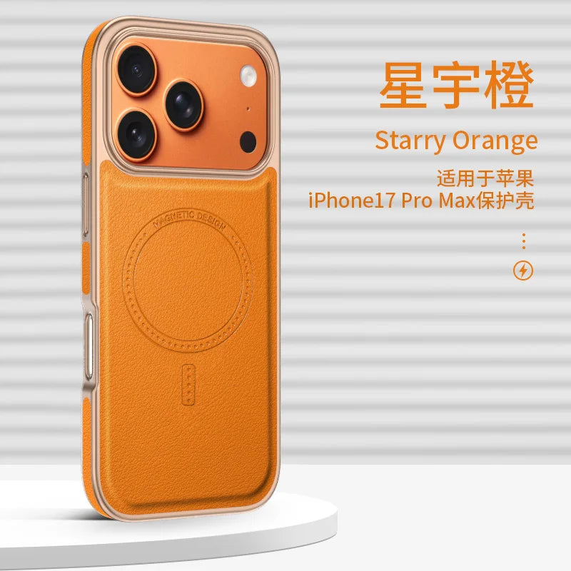 Luxury Business Electroplated Leather For Magsafe For iPhone 17 16 15 14 Pro Max Side Texture Magnetic Wireless Charging Cover